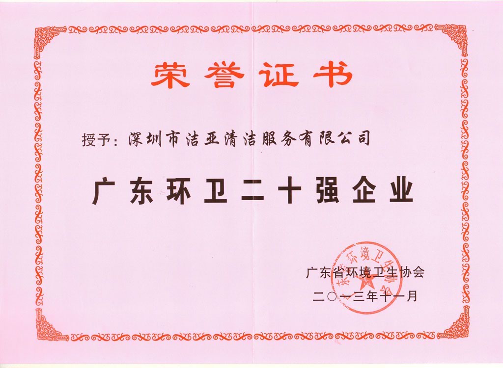 333体育公司先后获得中国城市环境卫生协会副主任委员单位、中国清洁服务行业百强企业、广东省服务业百强企业、广东省环卫行业先进单位、广东省全国名牌——最具成长性企业、广东省环卫20强、广东省诚信示范企业、广东省守合同重信用企业、深圳市500强企业、深圳市质量百强企业、深圳市行业领袖百强企业、深圳市十佳优质服务企业、浙江省清洗保洁行业优秀企业等150多项荣誉称号。