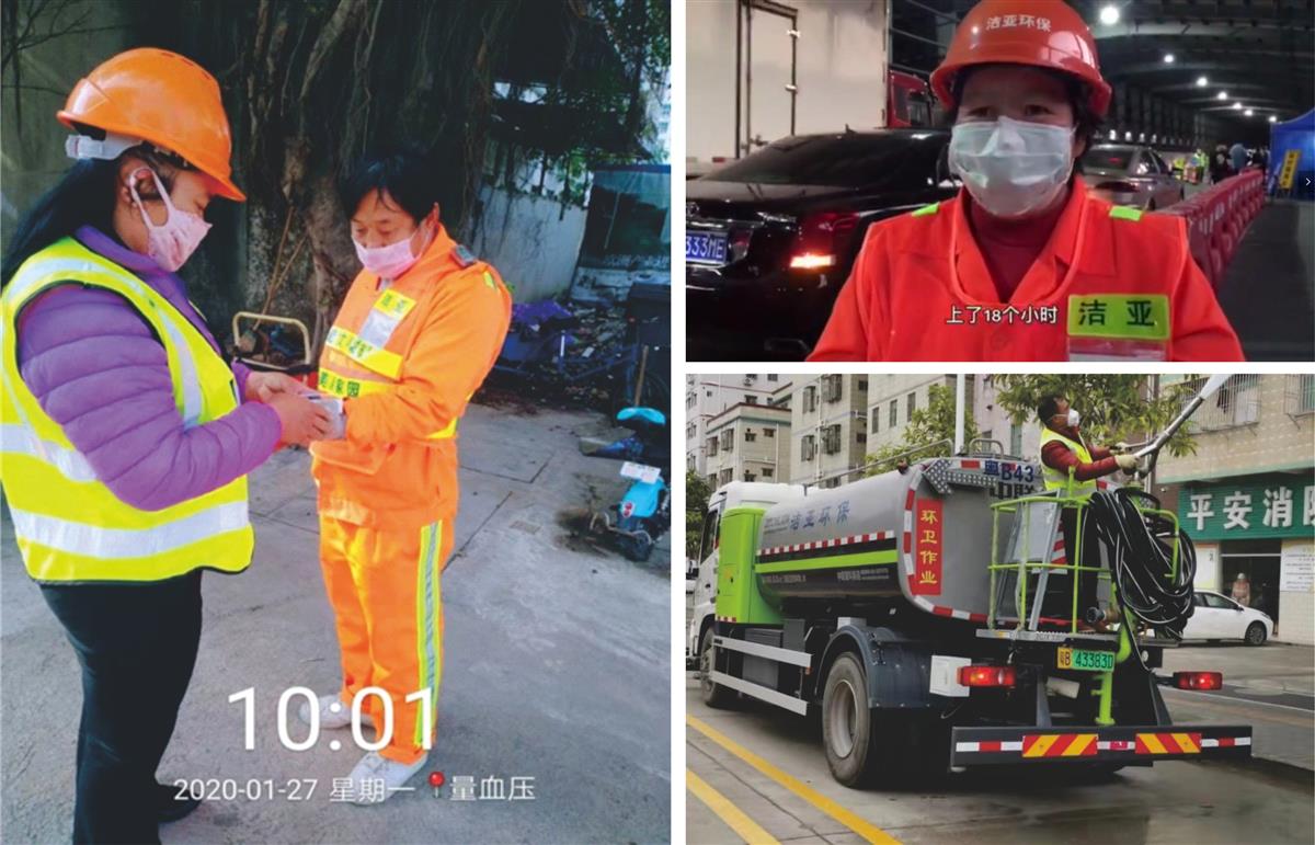 他们都是来自333体育各个项目的一线环卫工人,都有一个共同的名字——“抗疫楷模”。在疫情发生后,他们主动放弃春节假期,第一时间加入到各个项目的应急防控小组,加班加点,主动请缨,到疫情最严重的地方开展防疫消杀工作,每天平均工作在12小时以上。她们有的背负着几十斤的消毒液,每天行走在大街小巷上进行消毒工作,有的在危险的隔离区处理废弃的带有病毒的口罩和垃圾,有的全副武装进入隔离住户进行消毒作业……他们都抱着“疫情不结束,我们不休息”的状态投入到每天的工作中,她们没有轰轰烈烈的誓言和豪言壮志,只有默默地坚守和奉献在平凡的工作岗位上……