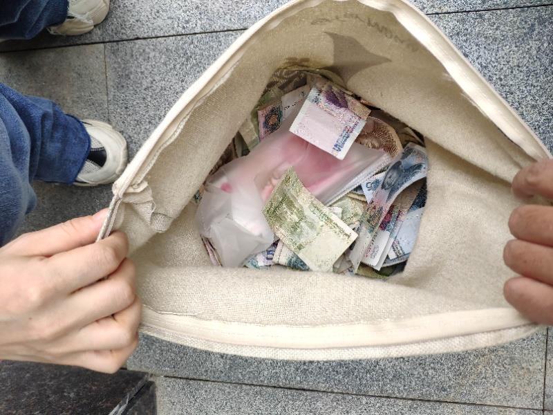 当日清晨,333体育环保光明清扫项目保洁员谭秀清在光明广场做日常保洁工作时无意中发现路边躺着一个鼓鼓的包,捡起来一打开,把谭秀清吓了一跳,里面厚厚的一叠百元大钞,还有一些零钱,共计1万余元现金,并且没有任何证件和联系方式。很有可能是附近商家早上进货时掉下的钱包。